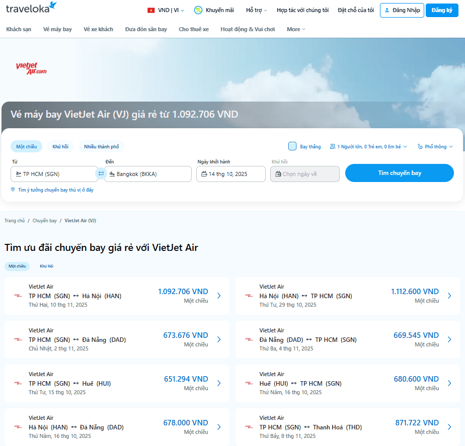 Với những ai thường xuyên săn vé máy bay giá rẻ VietJet Air khuyến mãi, thời gian là yếu tố quyết định. Trên ứng dụng và website của Traveloka, giá vé được cập nhật theo thời gian thực trực tiếp từ hệ thống VietJet Air.